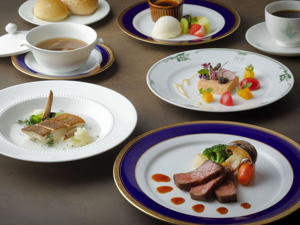 ご夕食:メインダイニングルームにてディナーコース「こぶし」のご用意