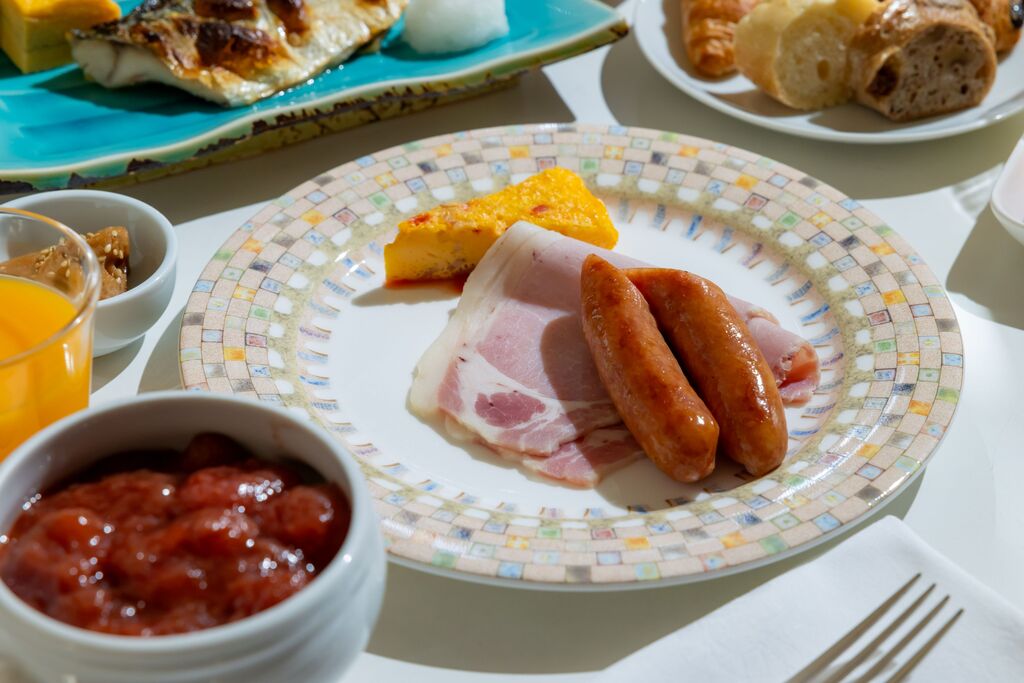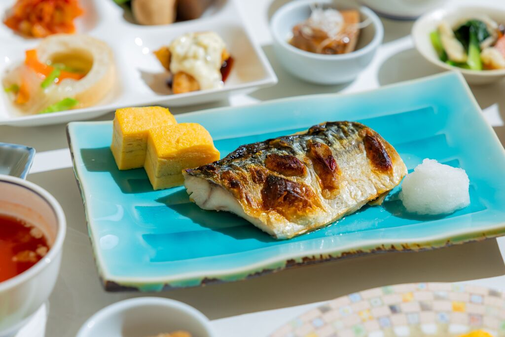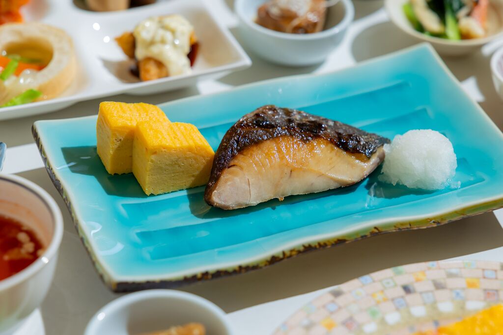 ・朝食は九州の食材&料理にこだわったハーフバイキング形式(メイン1品のみオーダー制)
