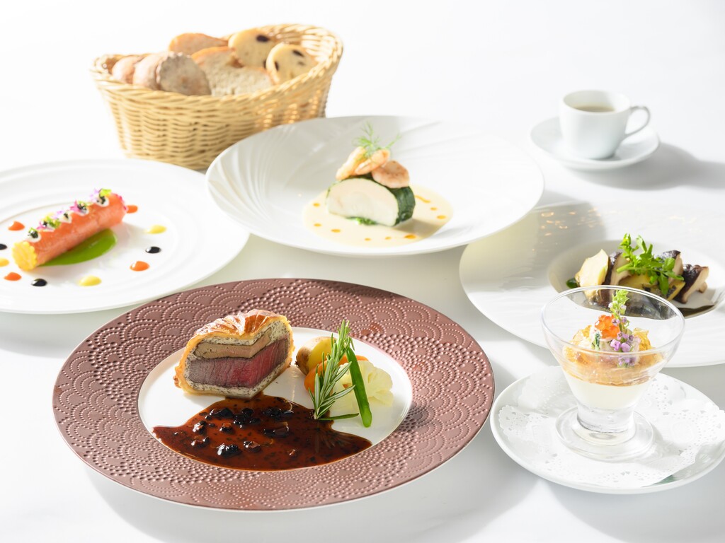 プレミアム棟最上階からの雄大な眺望と洋食のジャンルやカテゴリーにとらわれないアクアダイニングならではの料理をスタンダードコースにてご用意いたします。