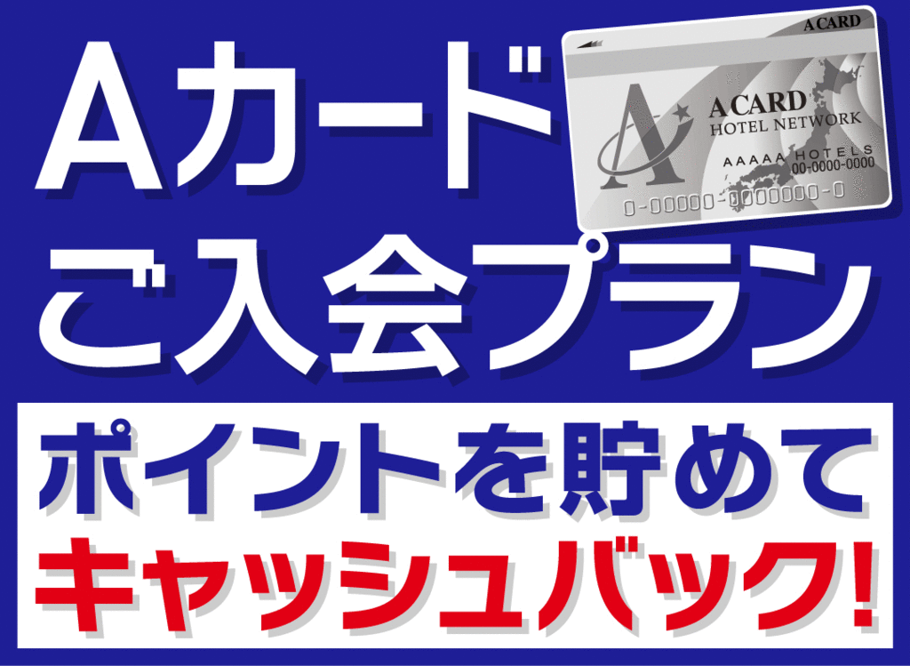 全国約400店舗で使えるAカードにご入会いただくだけでお得にご宿泊いただけます!