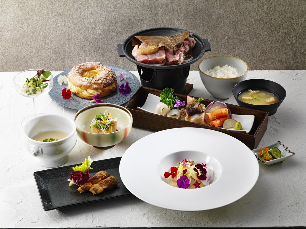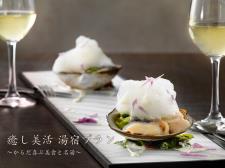 夕食は旬の味覚を使ったシェフお任せコース料理、朝食は和定食をお楽しみいただけます。