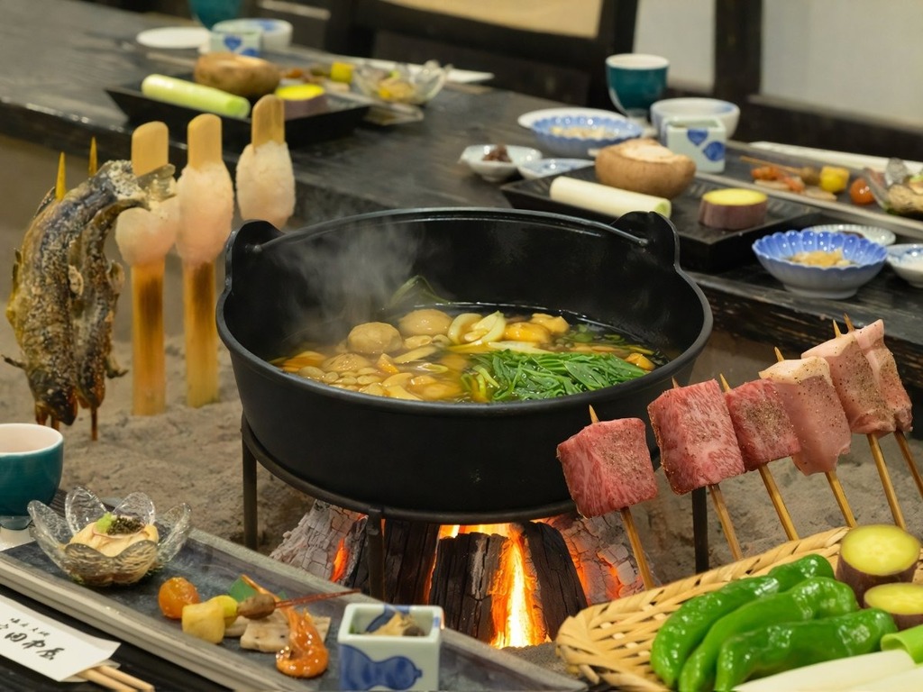 炭火が心をなごませる炉端料理。1日8組様限定です。お部屋食プランもございます。