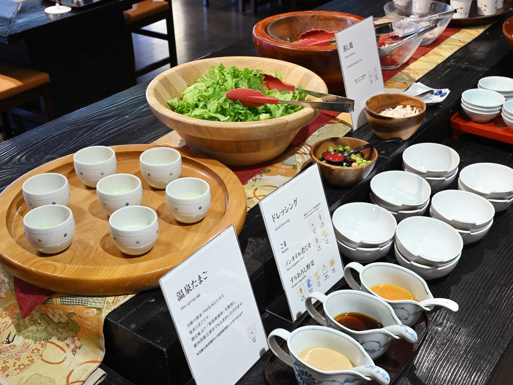 【渓谷風呂】心地よい香りに包まれて、静かな絶景を独り占めいただけます。 【炉端焼き】炭火のぬくもり、立ちのぼる香ばしさ。湯守田中屋 名物・炉端焼き会席。 野天風呂 春の様子 旬の野菜をたっぷり使ったお鍋です。囲炉裏の火を眺めながらゆったりとした時間をお過ごしください。 ご朝食 一例宿泊人数によって、ブッフェの提供がない場合がございます。