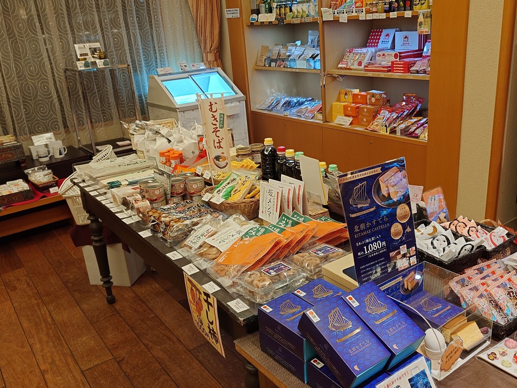 地元庄内や山形のものを中心に仕入れた商品や、あると嬉しいアルコール飲料等をフロント売店にて多数販売しております。