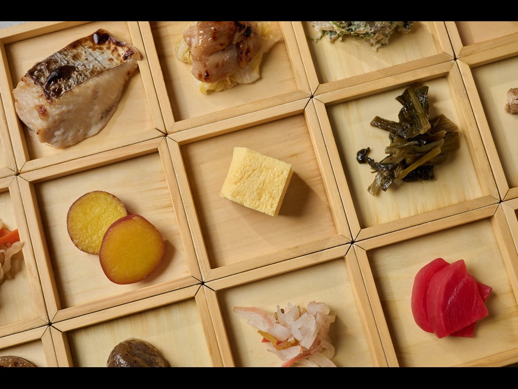 テーマに枡に収められたさまざまなおかずが引き立てます。