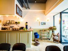 カフェとフロントを兼ね備えたカウンターバーでチェックイン。