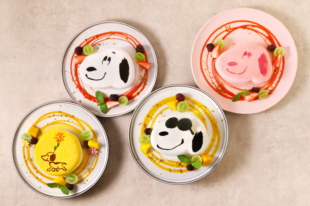 スヌーピーのクロックマダムやチャーリー・ブラウンをモチーフにした、イングリッシュマフィンのプレートをご用意しました。