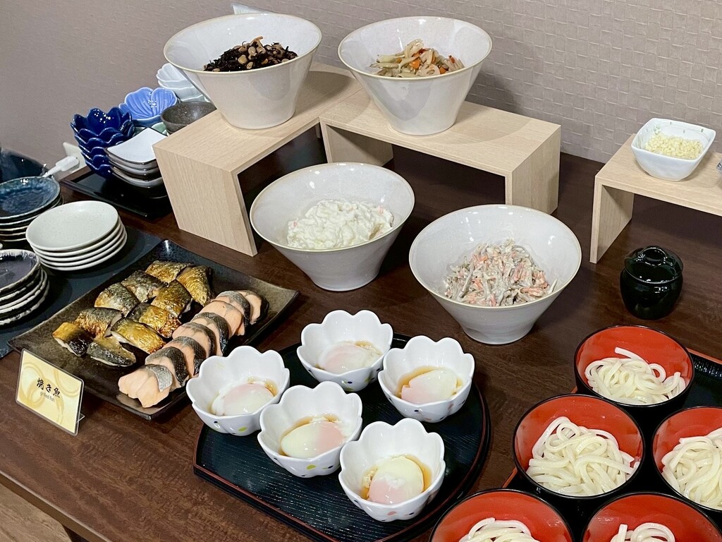 ●朝食:和洋食ビュッフェ(パン・ご飯・カレー・うどん・ウインナー・ベーコン・フレッシュサラダ・ジュース・珈琲等)