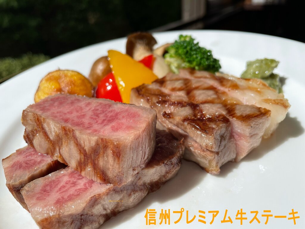 信州プレミアム牛の和風ステーキ(150g)をメインに、